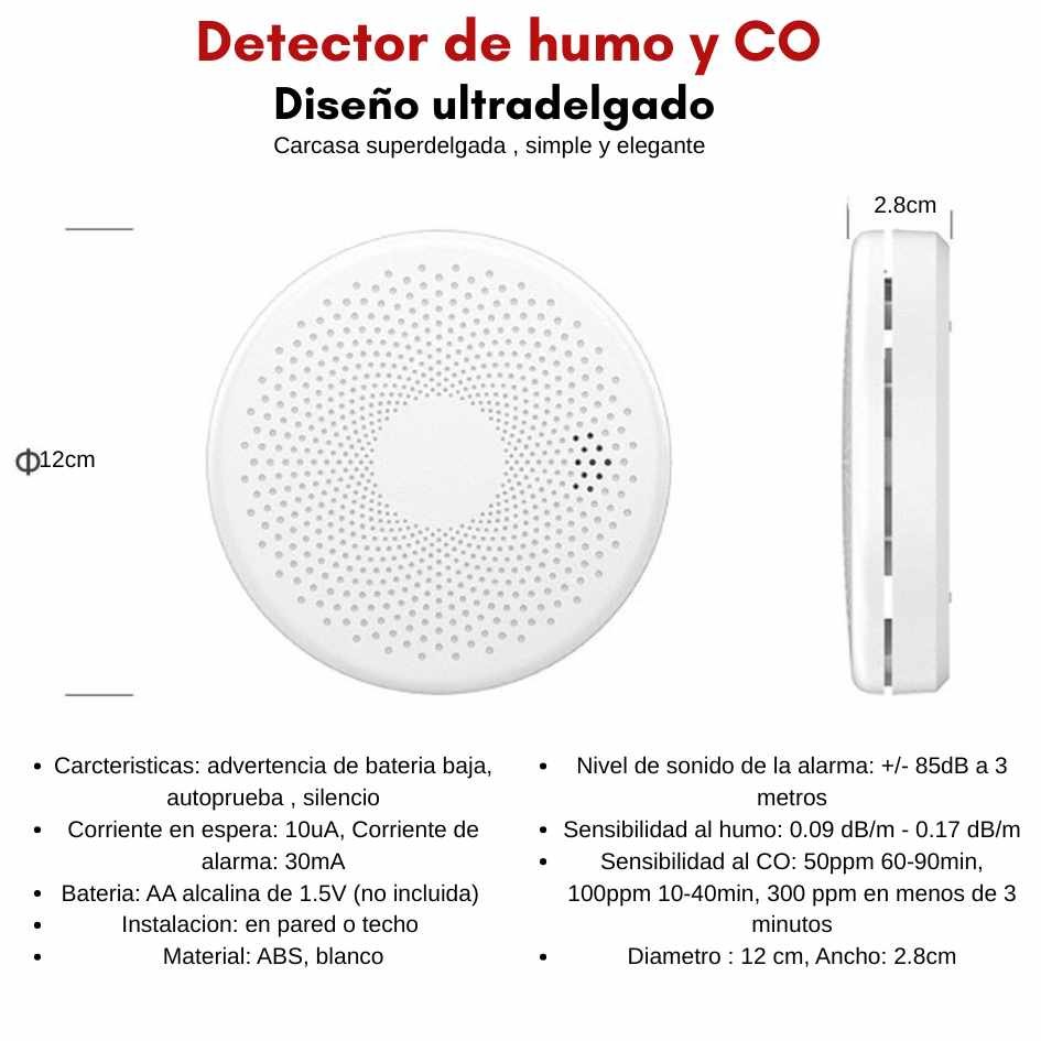 Sensor de Humo y CO con conectividad WiFi, control remoto vía app móvil,. Perfecta para hogares y oficinas modernas.